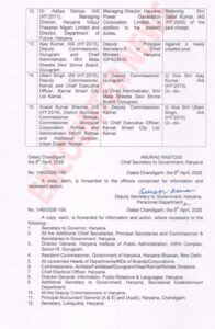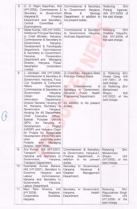 करनालः हरियाणा सरकार ने भारतीय प्रशासनिक सेवा (आईएएस) के 15 अधिकारियों का तबादला कर दिया है। ये तबादले तत्काल प्रभाव से लागू किए गए। इस लिस्ट में प्रदूषण विभाग से लेकर स्वास्थ्य और पंचायत विभाग के बड़े नाम शामिल हैं। हरियाणा राज्य प्रदूषण नियंत्रण बोर्ड के चेयरमैन विनीत गर्ग का विभाग बदल दिया गया है। उन्हें अब सरकार के मुद्रण एवं लेखन सामग्री (छपाई और स्टेशनरी) विभाग में एडिशनल चीफ सेक्रेटरी बनाया गया है।