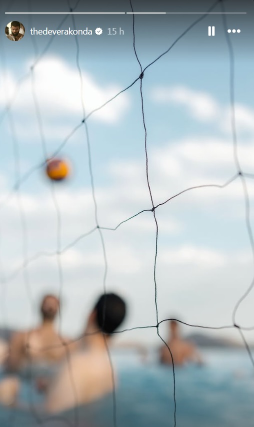 सिर्फ रश्मिका ही नहीं विजय देवरकोंडा ने भी वॉलीबॉल नेट पर फोकस किया है। इसमें खिलाड़ी पानी में और गेंद हवा में नजर आ रही है।