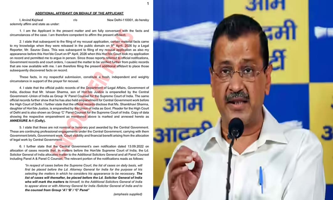 वही विधि अधिकारी और कानूनी तंत्र, जो इस माननीय अदालत के सामने अभियोजन पक्ष का प्रतिनिधित्व कर रहा है, उसी संस्थागत व्यवस्था का भी हिस्सा है जिसके तहत केंद्र सरकार के केस और सरकारी काम, इस मामले की सुनवाई कर रही माननीय न्यायाधीश के करीबी परिवार के सदस्यों को सौंपे जाते हैं।’ केजरीवाल ने सूचना का अधिकार (RTI) के तहत प्राप्त कुछ दस्तावेजों का हवाला दिया है। इन दस्तावेजों के अनुसार, वर्ष 2023-2025 के दौरान न्यायाधीश के बेटे को काफी मात्रा में कानूनी काम सौंपा गया था। उनका कहना है कि इन तथ्यों को सॉलिसिटर जनरल द्वारा सुनवाई की पहली तारीख पर ही सामने लाया जाना चाहिए था, न कि इन्हें कानूनी पत्रकारों या सोशल मीडिया के भरोसे छोड़ देना चाहिए था।