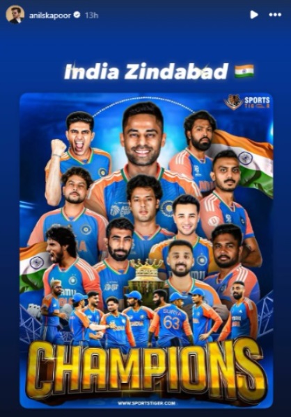 बॉलीवुड एक्टर अनिल कपूर ने टीम इंडिया को बधाई देते हुए स्टोरी में लिखा – ‘इंडिया जिंदाबाद’।