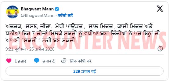 चंडीगढ़ः आप पार्टी के भीतर मची राजनीतिक हलचल ने बड़ा हंगामा मचा हुआ है। राघव चड्ढा समेत 3 सांसदों ने आप छोड़कर बीजेपी का दामन थाम लिया। वहीं, 4 सांसदों को लेकर सस्पेंस बरकरार है। इसे लेकर अब आप नेता और पंजाब के मुख्यमंत्री भगवंत मान ने तंज भरा पोस्ट शेयर किया है। भगवंत मान ने आप छोड़कर बीजेपी जॉइन कर चुके और करने की आशंका वाले 7 सांसदों की तुलना 7 मसालों से की। उन्होंने इन सब्जियों की खासियत बताते हुए कहा कि ये सब्जियां तब तक ही अहम हैं जब तक किसी में डाली न जाए। अपने आप में इनकी कोई अहमियत नहीं है।