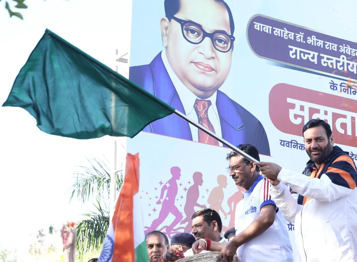 चंडीगढ़: हरियाणा के मुख्यमंत्री नायब सिंह सैनी ने आज यवनिका पार्क सेक्टर-5 से भारत रत्न बाबा साहेब डाॅ. भीमराव अंबेडकर को समर्पित समता मैराथन को झंडी दिखाकर रवाना किया। उन्होंने कहा कि यह दौड सामाजिक न्याय, समानता और अधिकारों के प्रति हमारी अटूट प्रतिबद्धता का प्रतीक है। इससे पूर्व, मैराथन स्थल पर पहुंचने पर युवाओं और बच्चों ने मुख्यमंत्री का जोरदार स्वागत किया। मुख्यमंत्री ने भी स्नेहपूर्वक लोगों का अभिवादन स्वीकार किया।