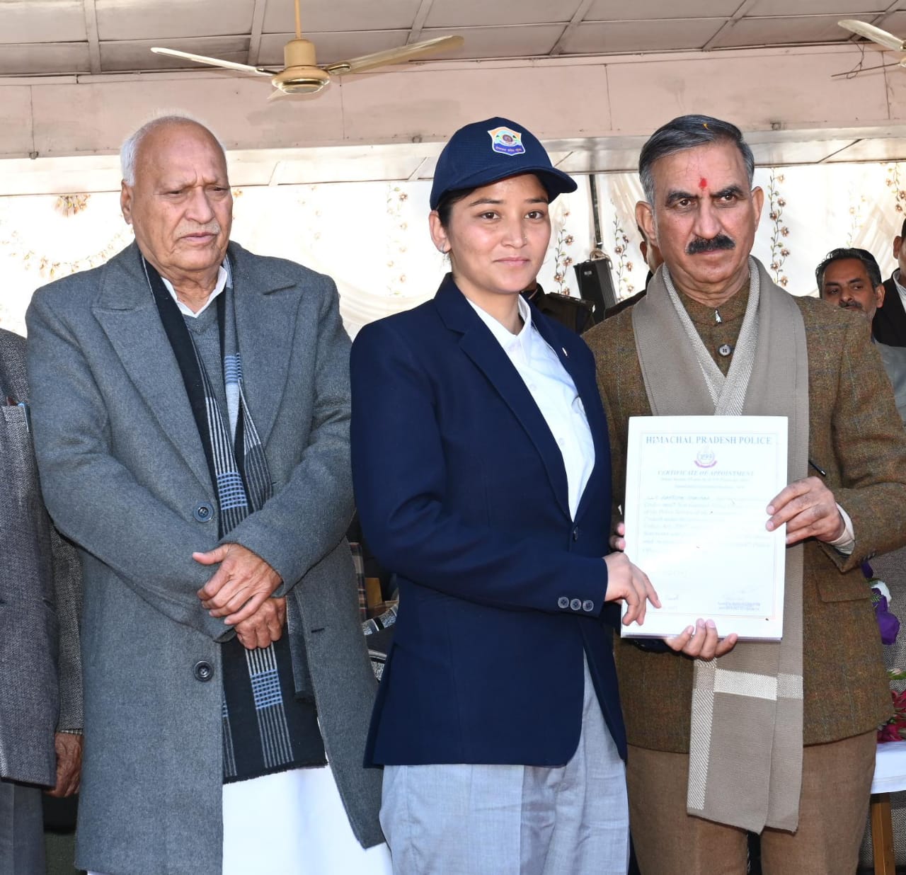 आज आप केवल नौकरी नहीं ले रहे हैं बल्कि आज आप एक जिम्मेदारी, एक पहचान और एक मिशन को स्वीकार कर रहे हैं। हिमाचल प्रदेश शांति, संस्कृति और देवभूमि के लिए जाना जाता है। आज सरकार ने नशे के विरुद्ध लड़ाई को एक जन आंदोलन बनाया है जिसकी सबसे सबसे मजबूत ताकत हिमाचल प्रदेश पुलिस है। हिमाचल पुलिस देश की सबसे आधुनिक, सबसे तेज और सबसे भरोसेमंद पुलिस फोर्स में शामिल है। आपातकालीन सेवा (ईआरएसएस-112) में औसत प्रतिक्रिया समय के मामले में हिमाचल पुलिस पूरे देश में पहले स्थान पर है जबकि सीसीटीएनएस (क्राइम एंड क्रिमिनल ट्रैकिंग नेटवर्क एंड सिस्टमस) में पहाड़ी राज्यों में हिमाचल प्रदेश लगातार प्रथम स्थान पर बना हुआ है। आईटीएसएसओ (इनवेस्टिगेशन ट्रैकिंग सिस्टम फॉर सैक्सुअल ओफेंसिसद्ध में हिमाचल पुलिस लगातार देश-भर में पांचवां स्थान प्राप्त कर रही है।