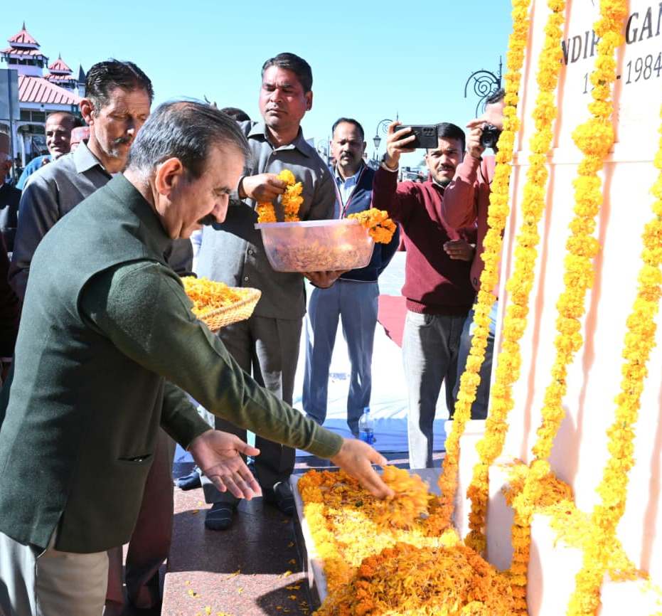 शिमला: मुख्यमंत्री ठाकुर सुखविंद्र सिंह सुक्खू ने आज यहां ऐतिहासिक रिज पर भारत की प्रथम महिला प्रधानमंत्री इंदिरा गांधी की जयंती पर उन्हें पुष्पाजंलि अर्पित की। मुख्यमंत्री ने राष्ट्र के विकास में इंदिरा गांधी के योगदान को याद करते हुए कहा कि उनके दूरदर्शी निर्णयों ने भारत को मजबूत आधार प्रदान कर सशक्त बनाया।