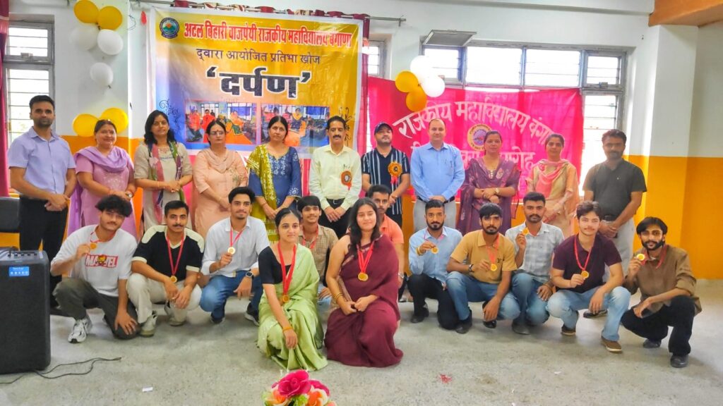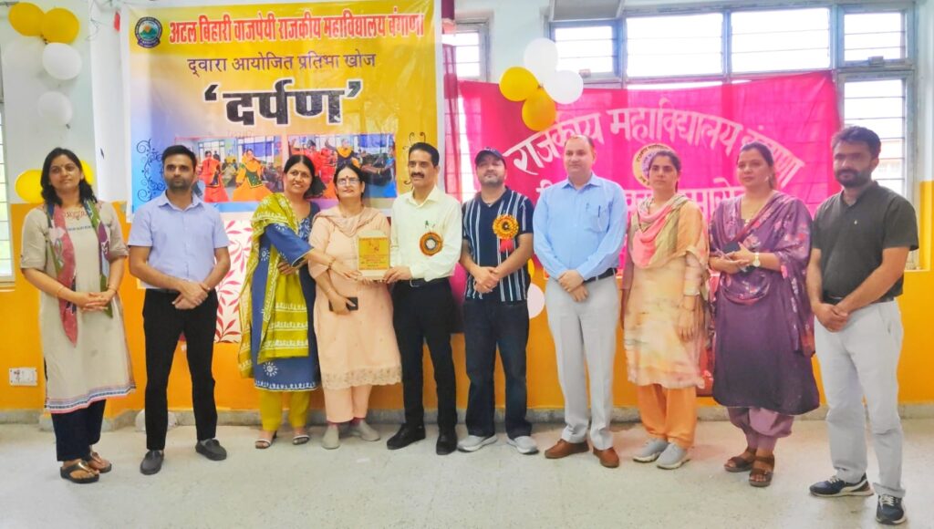 ऊना/सुशील पंडित: अटल बिहारी वाजपेयी राजकीय महाविद्यालय, बंगाणा में आज दो दिवसीय कार्यक्रम “प्रतिभा खोज – दर्पण 2025” का भव्य समापन हुआ। कार्यक्रम की अध्यक्षता संयोजक प्रो. अनु लखनपाल ने की, जबकि मुख्य अतिथि के रूप में महाविद्यालय के प्राचार्य डॉ. रमेश ठाकुर उपस्थित रहे। उन्होंने दीप प्रज्वलित कर कार्यक्रम का शुभारंभ किया। मंच संचालन वैदेही शर्मा और तनु ठाकुर ने किया।