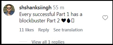 एक ने लिखा कि – ‘हर सक्सेसफुल पार्ट 1 का दूसरा पार्ट भी सक्सेसफुल रहता है’।