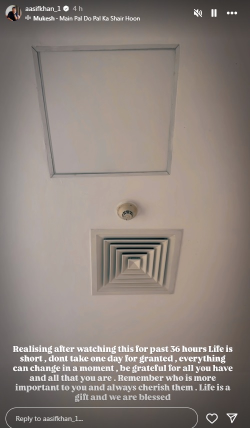 इस बात की जानकारी आसिफ खान ने खुद फैंस को दी है। उन्होंने अपने इंस्टाग्राम पर स्टोरी शेयर करते हुए लिखा कि – ‘पिछले 36 घंटों से इसे देखने के बाद मुझे एहसास हुआ है कि जीवन छोटा है एक दिन को भी हल्के में न लें, एक पल में सब कुछ बदल सकता है। आपके पास जो भी कुछ हैं और आप जो हैं उसके लिए आभारी रहें। याद रखें कि आपके लिए कौन ज्यादा जरुरी है और हमेशा उनकी कद्र करें। जीवन एक उपहार है और हम धन्य हैं’।