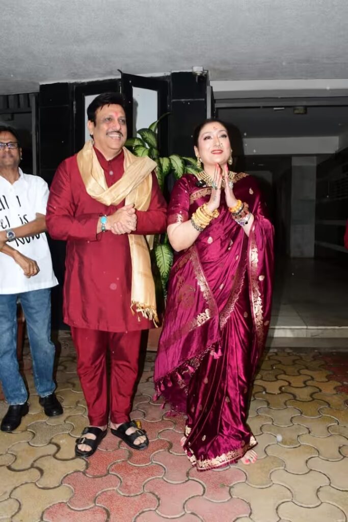 इस दौरान कपल ने पैपाराजी को मिठाई भी बांटी हैं। तस्वीरों में दोनों के चेहरे पर त्योहार की खुशी साफ दिखी है। कपल मैरुन कलर के रंग में ट्विनिंग करता हुआ दिखा है जहां सुनीता मरुन कलर की सिल्क साड़ी और बालों में गजरा लगाकर बेहद खूबसूरत लग रही थी। वहीं दूसरी ओर गोविंदा इस दौरान मरुन कलर के कुर्ता में बेहद हैंडसम नजर आए। अपने लुक को एक्टर ने गोल्डन चुनरी के साथ पूरा किया था।
