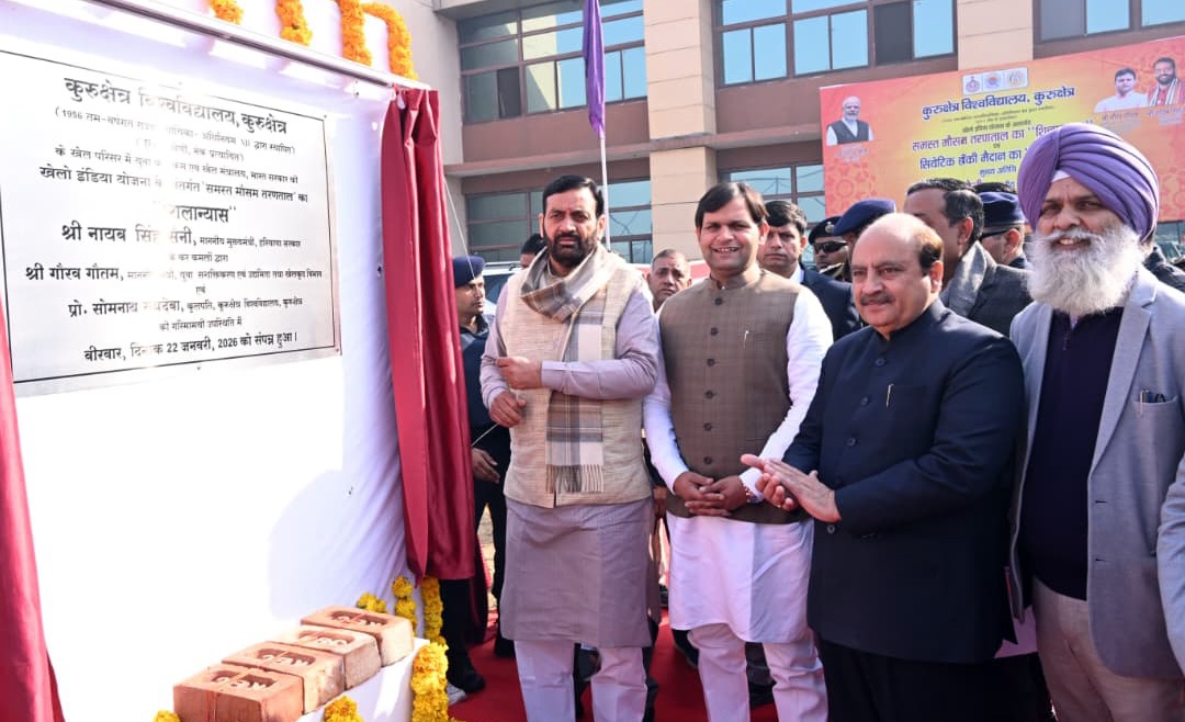 मुख्यमंत्री वीरवार को कुरुक्षेत्र विश्वविद्यालय के खेल प्रांगण में विश्वविद्यालय प्रशासन की तरफ से आयोजित कार्यक्रम में खिलाड़ियों से बातचीत कर रहे थे। इससे पहले मुख्यमंत्री नायब सिंह सैनी, खेल राज्य मंत्री गौरव गौतम ने युवा कार्यक्रम एवं खेल मंत्रालय, भारत सरकार की खेलो इंडिया योजना के तहत करीब 5 करोड़ 50 लाख रुपये की लागत से निर्मित सिंथेटिक हॉकी मैदान का उद्घाटन किया। इसके साथ ही मुख्यमंत्री ने खेलो इंडिया योजना के तहत 8 करोड़ रुपये की लागत से बनने वाले आल वेदर स्विमिंग पूल के प्रोजेक्ट का शिलान्यास भी किया। उद्घाटन के बाद मुख्यमंत्री नायब सिंह सैनी और खेल राज्य मंत्री गौरव गौतम ने स्वयं हॉकी स्टिक थामी और नए सिंथेटिक ट्रैक पर जोरदार स्ट्रोक लगाकर मैदान का परीक्षण किया।