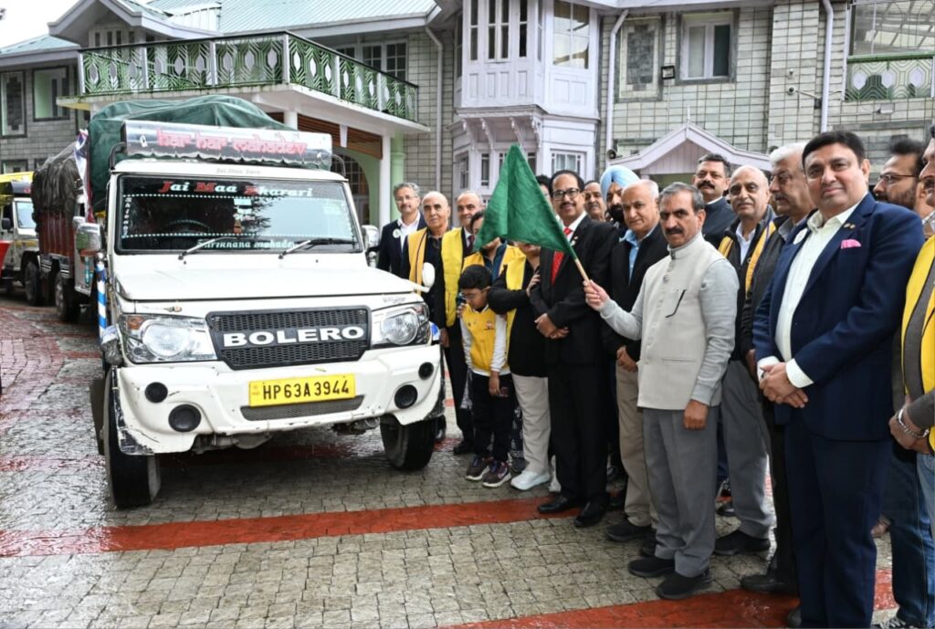 शिमला: मुख्यमंत्री ठाकुर सुखविंद्र सिंह सुक्खू ने आज ओक ओवर से राज्य के आपदा प्रभावित क्षेत्रों के लिए राहत सामग्री के पांच वाहनों को हरी झंडी दिखाकर रवाना किया। अंतरराष्ट्रीय लायंस क्लब के द्वारा दी गई इस राहत सामग्री में 161 किट हैं जिनमें सूखा राशन, बर्तन, कंबल, तिरपाल और अन्य आवश्यक वस्तुएं शामिल हैं। यह सामग्री संबंधित उप-मंडल मजिस्ट्रेटों के जरिए प्रभावित परिवारों को बांटी जाएंगी।