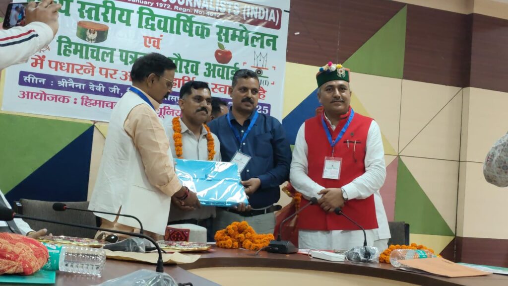 बद्दी/सचिन बैंसल: नेशनल यूनियन ऑफ जर्नलिस्ट्स इंडिया (एनयूजे इंडिया) हिमाचल इकाई का द्विवार्षिक सम्मेलन आज रविवार को नैना देवी मंदिर परिषद के मातृ आंचल सभागार में सफलतापूर्वक संपन्न हुआ। अधिवेशन में मुख्य अतिथि के रूप में नैना देवी के विधायक रणधीर शर्मा उपस्थित रहे, जबकि मुख्य वक्ता के रूप में राष्ट्रीय अध्यक्ष रास बिहारी और राष्ट्रीय महामंत्री प्रदीप तिवारी ने भाग लिया। कार्यक्रम की अध्यक्षता राज्य प्रधान डॉ रणेश राणा ने की!