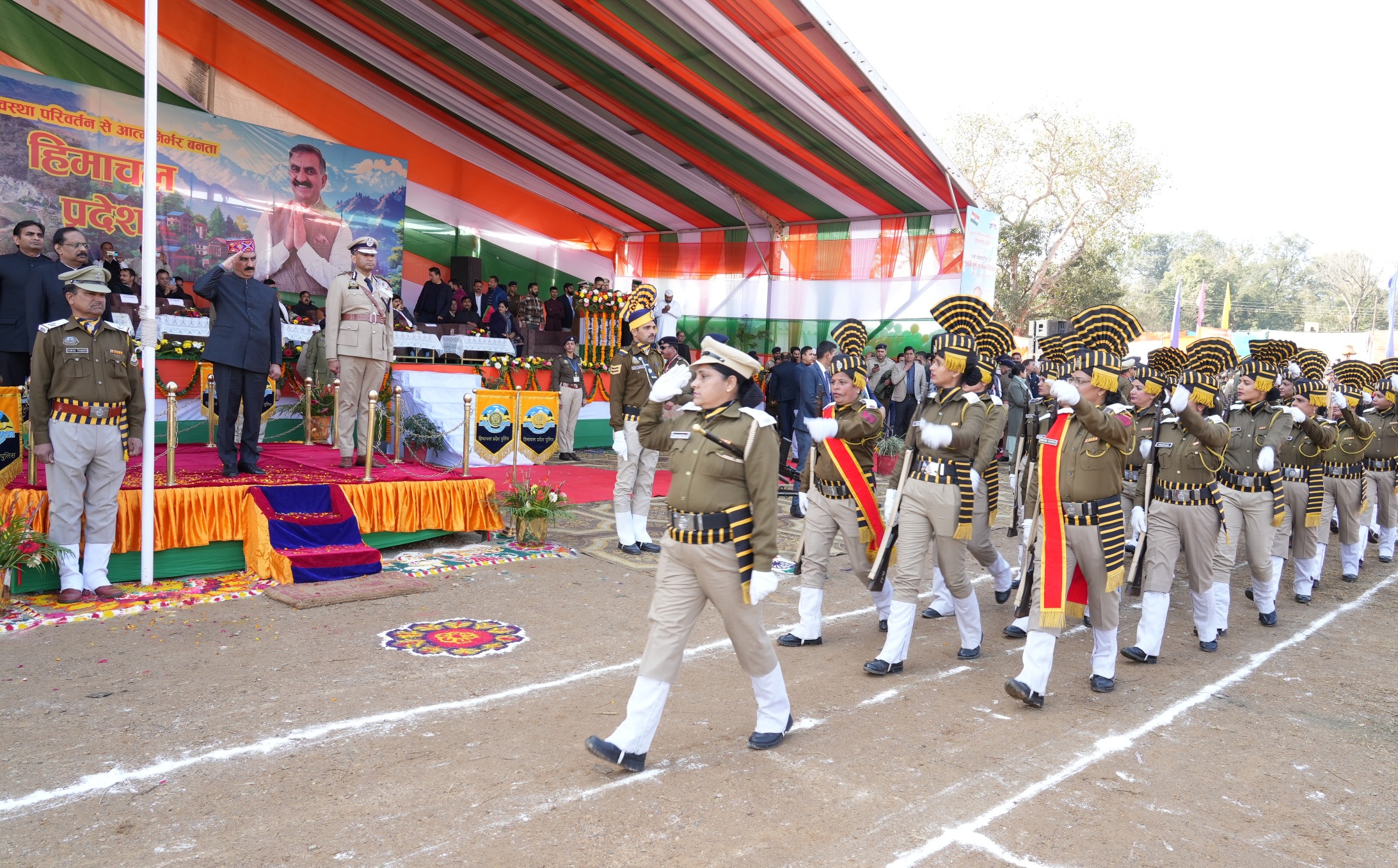 शिमला: मुख्यमंत्री ठाकुर सुखविन्द्र सिंह सुक्खू ने कांगड़ा जिले के प्रागपुर में आयोजित 56वें पूर्ण राज्यत्व दिवस समारोह के दौरान प्रदेशवासियों को शुभकामनाएं दीं। यह पहला अवसर था जब प्रागपुर में राज्य स्तरीय समारोह आयोजित हुआ। मुख्यमंत्री ने राष्ट्रीय ध्वज फहराया और परेड की सलामी ली। परेड का नेतृत्व आईपीएस अधिकारी तरुणा ने किया, जिसमें आईआरबीएन, पुलिस, होमगार्ड, एसडीआरएफ, एनसीसी, स्काउट्स एंड गाइड्स सहित विभिन्न टुकड़ियों ने भाग लिया। मुख्यमंत्री ने इस अवसर पर प्रदेश को पूर्ण राज्य का दर्जा दिलाने में पूर्व प्रधानमंत्री इंदिरा गांधी और प्रथम मुख्यमंत्री डॉ. यशवंत सिंह परमार के योगदान को याद किया।
