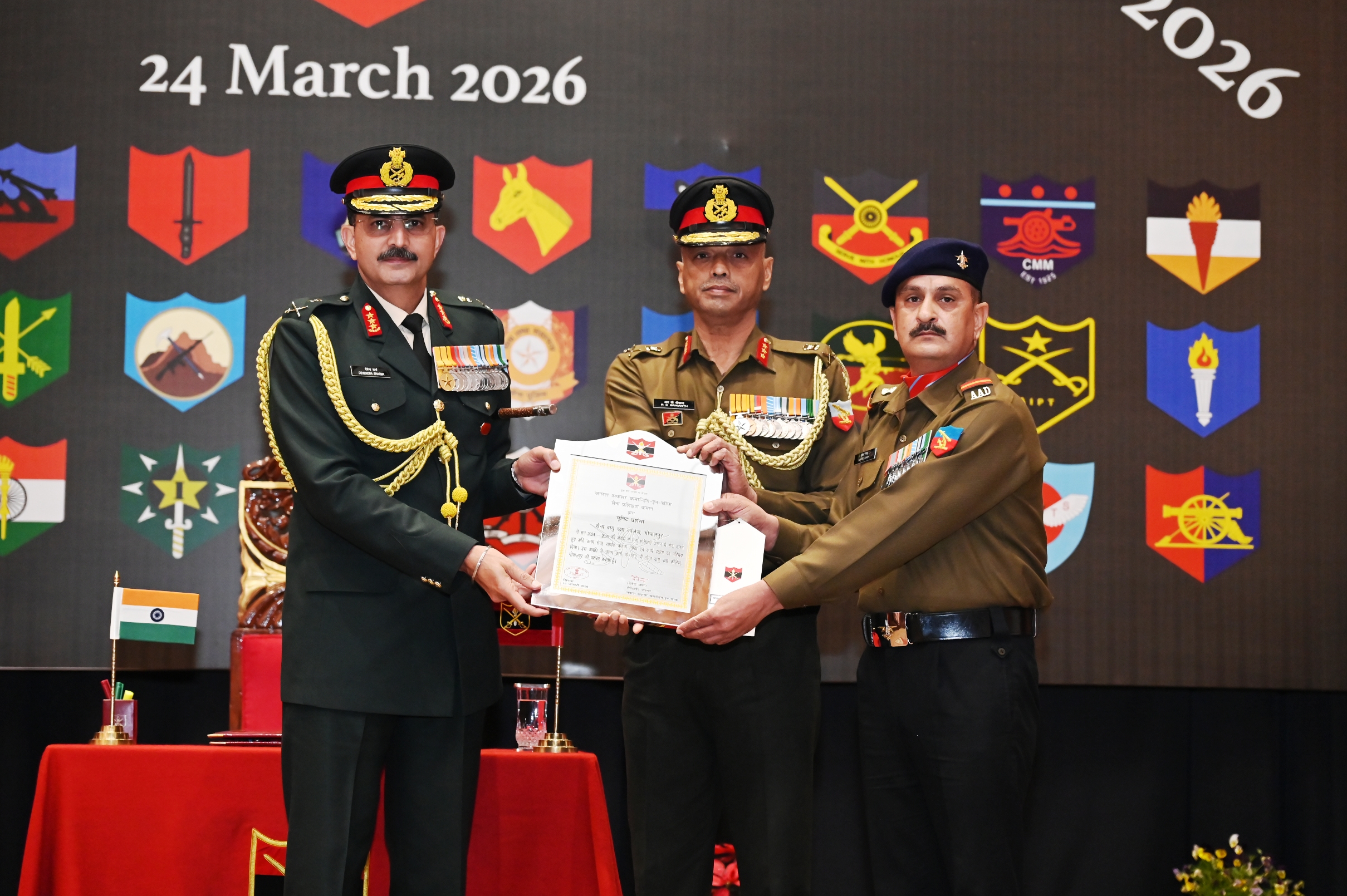 शिमला: आर्मी ट्रेनिंग कमांड (आरट्रैक) के जनरल ऑफिसर कमांडिंग-इन-चीफ लेफ्टिनेंट जनरल देवेंद्र शर्मा, पीवीएसएम, एवीएसएम, एसएम ने आज डैनफे ऑडिटोरियम, शिमला में आयोजित आरटैक अलंकरण समारोह 2026 की अध्यक्षता की। इस अवसर पर प्रशिक्षण वर्ष 2025-26 के दौरान उत्कृष्ट प्रदर्शन करने वाले प्रशिक्षण संस्थानों और सैन्य कर्मियों को सम्मानित किया गया।