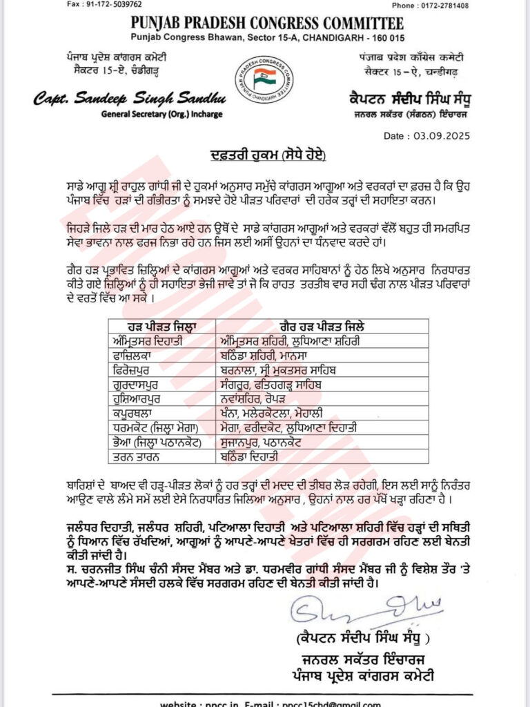 वहीं अब कांग्रेस प्रदेश कमेटी ने पत्र जारी करके चरणजीत सिंह चन्नी और धर्मवीर गांधी को विशेष तौर पर अपने अपने हलके में सरगरम रहने के आदेश जारी किए है। दरअसल, चन्नी चमकौर साहब के मुद्दों को लेकर या बाढ़ ग्रस्त इलाके को लेकर अक्सर सोशल मीडिया पर पोस्ट डाल रहे हैं। जबकि वह भूल गए हैं कि अगर आज वह सांसद बने हैं तो वह जालंधर जिले से बने हैं। लेकिन जालंधर के 9 हलकों के कामों ओर मुद्दों को छोड़ अब वह अपने पुराने हल्के चमकौर को साहब के मुद्दों को लेकर अपने सोशल मीडिया अकाउंट पर लाइव हो वीडियो बनाकर सहानुभूति ले रहे है।