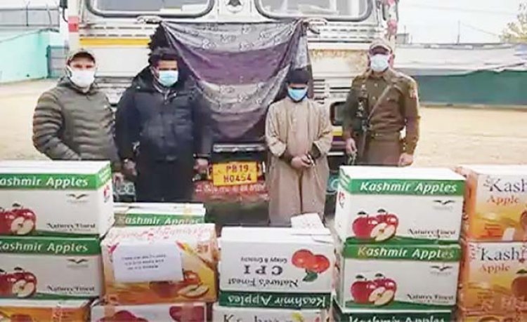 एसडीपीओ पंपोर मीर इम्तियाज अहमद की निगरानी में एसएचओ मंजूर अहमद के नेतृत्व में खरियू पुलिस स्टेशन की एक टीम ने गांव एंड्रोसा में नाकाबंदी के दौरान पंजाब जा रहे ट्रक को रोका। जिसका रजिस्ट्रेशन नंबर पीबी19एच-0454 था, जिसमें तीन लोग सवार थे। पुलिस अधिकारियों ने बताया कि ट्रक की जब तालाशी ली तो नशा तस्करों ने सेब की पेटियों में छिपाया चूरापोस्त मिला। चेकिंग के दौरान 22 पेटियां सेब की बरामद हुई।