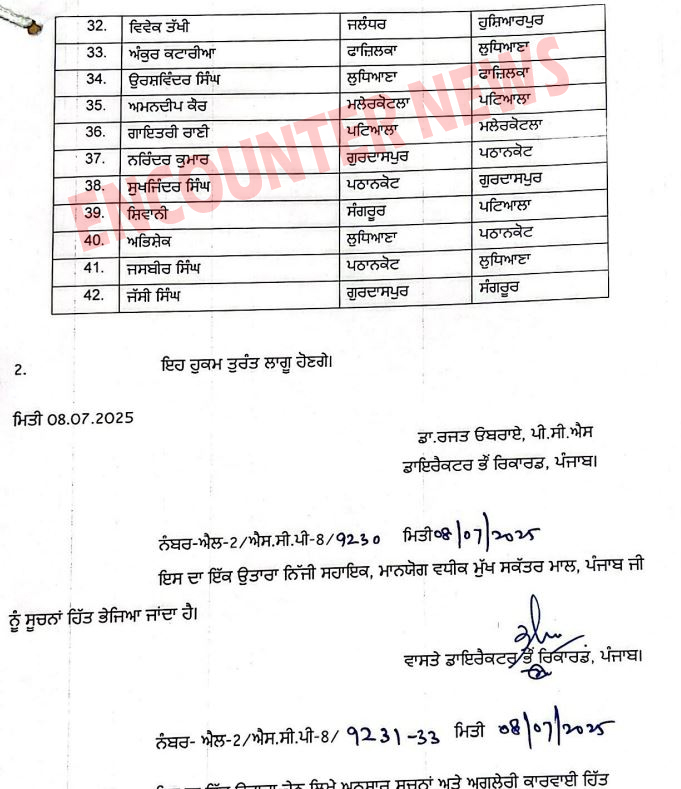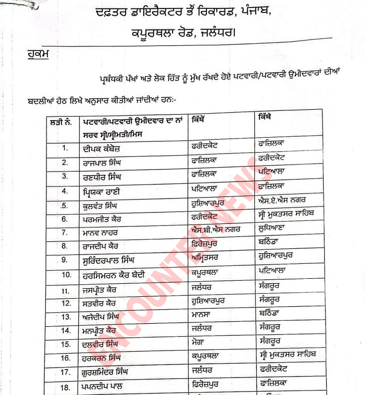 Punjab News: 42 पटवारियों के हुए तबादलें, देखें लिस्ट