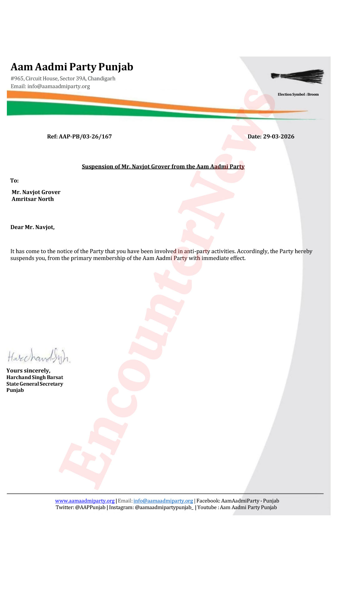 अमृतसरः आम आदमी पार्टी (AAP) से जुड़ी इस समय की बड़ी खबर सामने आ रही है। जहां, पार्टी ने अमृतसर के तीन नेताओं को पार्टी से निष्कासित कर दिया है। यह कार्रवाई पार्टी विरोधी गतिविधियों में उनकी संलिप्तता के कारण की गई है। जिनकी नीचे दी गई सूची निम्न है…