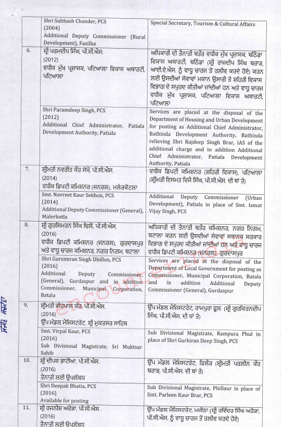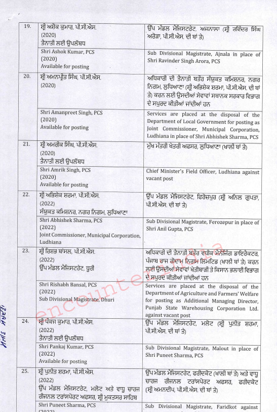 चंडीगढ़ः पंजाब में मान सरकार की तरफ से एक बार फिर एक बड़ा प्रशासनिक फेरबदल कर दिया गया है। पंजाब सरकार ने तत्काल प्रभाव से 2 (IAS) आईएएस व 40 (PCS) पीसीएस अधिकारियों का तबादला कर दिया है। जिनकी नीचे दी गई सूची निम्न है।