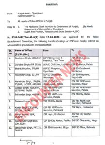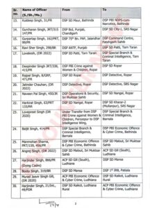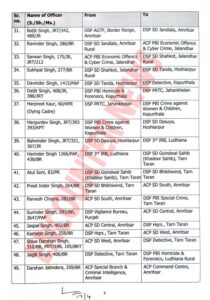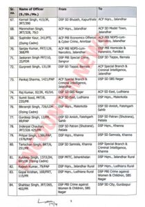 मोहालीः पंजाब में बड़े स्तर पुलिस प्रशासन में फेरबदल हुआ है। जारी आदेशों के अनुसार जालंधर के एसीपी अजय सहित 129 एसीपी और डीएसपी अधिकारियों के तबादलें किए गए। देखें लिस्ट