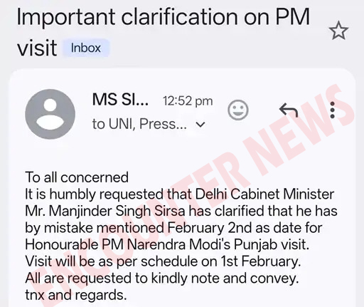हालांकि पीए के दौरे को लेकर पंजाब के भाजपा नेता कन्फ्यूज दिख रहे हैं। इस कन्फ्यूजन के बाद अब इस मामले में मनजिंदर सिरसा के ऑफिस से सूचना भेजी गई कि PM मोदी एक फरवरी को ही जालंधर आएंगे। दिल्ली के मंत्री मनजिंदर सिरसा ने पहले ही क्लियर कर दिया कि उन्होंने गलती से 2 फरवरी बता दिया, PM मोदी का दौरा एक फरवरी को ही फाइनल है।
