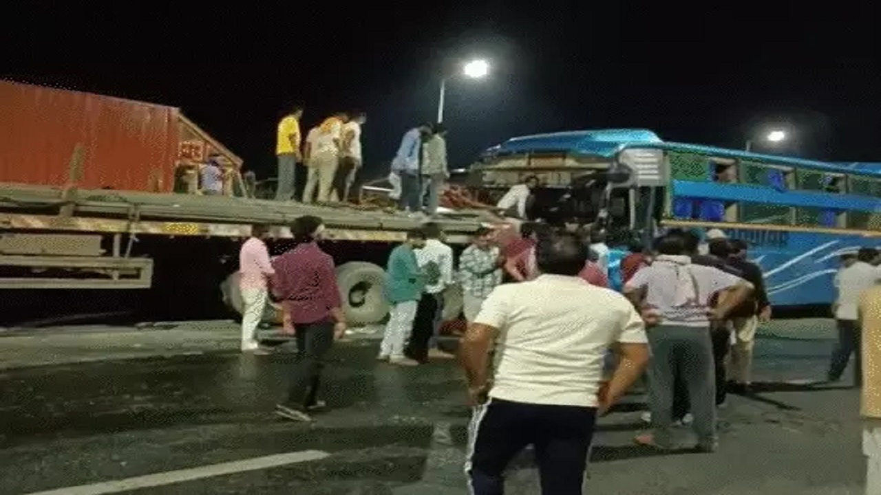 जानकारी देते बस के दूसरे ड्राइवर ओमप्रकाश ने बताया कि बस मकराना से हरिद्वार जा रही थी। बस में करीब 22 सवारियां थी। कोटपूतली बीडीएम हॉस्पिटल के सामने पहुंचे तो हाईवे पर ट्रेलर खड़ा हुआ था। ट्रेलर ड्राइवर ने न पार्किंग का बोर्ड लगाया हुआ था, न इंडिकेटर दिए हुए थे। फ्लाईओवर चढ़ते ही बस खड़े ट्रेलर में घुस गई। इस दौरान ट्रेलर में रखे सरिए बस के केबिन को चीरते हुए अंदर तक आ गए। हादसे में नागौर के लाड़ौली गांव निवासी ड्राइवर चंद्रमोहन (55) और महिला यात्री बिच्चू देवी की मौत हो गई, जबकि 16 यात्री घायल हो गए। तेज आवाज और चीख-पुकार सुन आस-पास के लोग मौके पर पहुंचे। लोगों की मदद से यात्रियों को बाहर निकाला गया। भिड़ंत से बस इतनी बुरी तरह क्षतिग्रस्त हो गई थी कि कई यात्री उसमें फंसे रह गए।