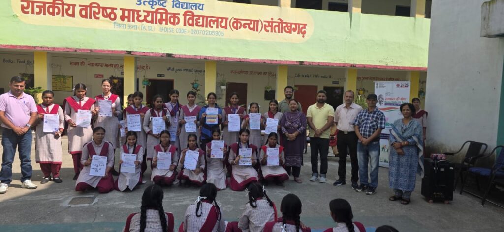 ऊना/सुशील पंडित: राजकीय कन्या वरिष्ठ माध्यमिक विद्यालय संतोषगढ़ में स्वच्छता ही सेवा अभियान के तहत इंडियन ऑयल के उत्तरी क्षेत्र पाइपलाइन्स (उ.क्षे.पा.) ऊना द्वारा नारा लेखन प्रतियोगिता का आयोजन किया गया। इस प्रतियोगिता में विद्यालय की छात्राओं ने उत्साहपूर्वक भाग लेकर स्वच्छता के प्रति अपनी रचनात्मकता और प्रतिबद्धता को प्रस्तुत किया। प्रतियोगिता में 110 से अधिक छात्राओं ने भाग लिया और स्वच्छता से जुड़े प्रभावशाली नारे प्रस्तुत किए।