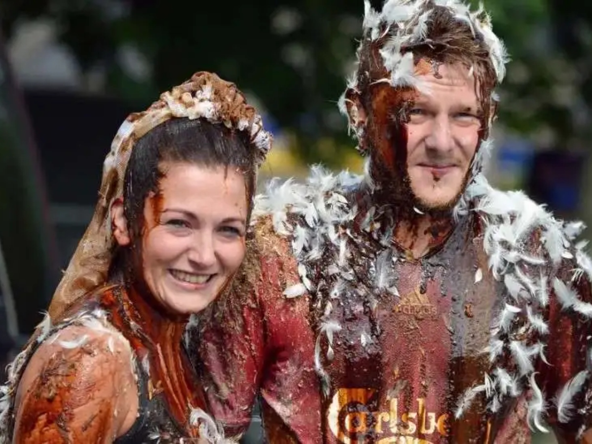 स्कॉटलैंड में शादी से पहले “ब्लैकनिंग” नामक एक मजेदार और विचित्र रस्म निभाई जाती है। इसमें दूल्हा-दुल्हन पर काली स्याही, अंडे, आटा, कचरा और सड़ा हुआ खाना तक फेंका जाता है। उन्हें पूरी तरह गंदा कर दिया जाता है और फिर पूरे गांव में घुमाया जाता है। मान्यता है कि यह रस्म उन्हें शादी के बाद आने वाली कठिनाइयों के लिए मानसिक रूप से तैयार करती है।