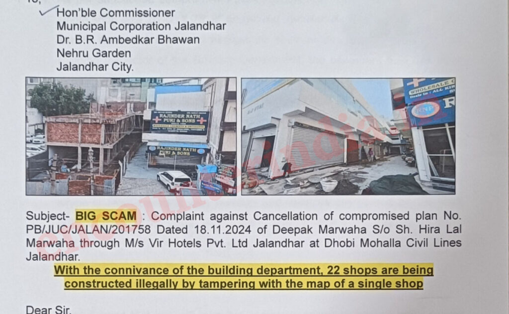 जालन्धर में पिछले कुछ सालों से एक चलन चल रहा है कि अगर कोई बिल्डिंग बिना नक्शा पास करवाए बनवानी है तो राजनेता की शरण लेनी जरूरी है। इसके बिना कई तरह की कानूनी परेशानियां सामने आ सकती है। दमोरिया पुल से किशनपुरा चौंक की ओर गुरु रविदास स्कूल के साथ एक राजनेता के करीबी दुकानदार ने एक खंडर तथा रिहायशी इलाके में कई मकान खरीदे और उसे तोड़ कर वहां 30 मरले की कल्ब कमर्शियल बिल्डिंग का लैंटर डालने के लिए शटरिंग कर दी गई।