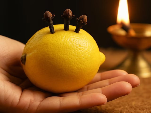 अगर आप व्यापार या नौकरी में लगातार परेशानियों का सामना कर रहे हैं, तो रविवार को एक नींबू लें, उसमें चार लौंग लगाएं और फिर ॐ श्री हनुमते नमः मंत्र को 21 बार बोलें। इसके बाद उस नींबू को अपने पास रख लें या अपने कार्यस्थल पर रखें। माना जाता है कि इससे काम में आ रही अड़चनें कम होती हैं और तरक्की के रास्ते खुलते हैं। पुराने समय से लोग नींबू और हरी मिर्च का उपयोग नजर दोष और बुरी शक्तियों से बचने के लिए करते आए हैं। माना जाता है कि इनकी कंपन ऊर्जा ऐसी होती है जो नकारात्मक तत्वों को पास नहीं आने देती।